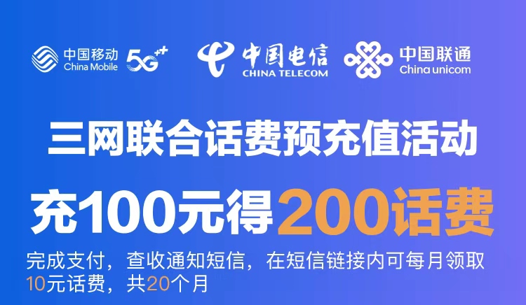 2.支付 100元参与话费月月领活动,可获得200元电话费,每月可手动领取10元话费。